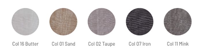 La collezione è proposta in cinque varianti cromatiche – butter, sand, taupe, iron e mink – che spaziano dalle tonalità calde e accoglienti ai grigi più sofisticati. Ai formati standard si affianca la possibilità di realizzare misure speciali su richiesta, per adattare il tappeto alle reali proporzioni dell’ambiente e completare ogni progetto su misura.